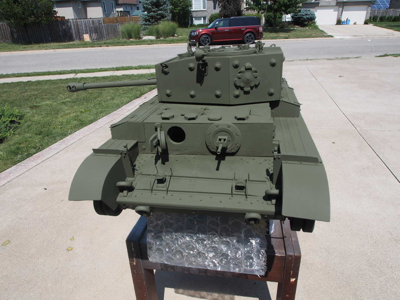 So I was able to do a little work on the Cromwell this week.  Nothing major as I am still in the process of casting the tracks and finishing up the road wheels.  There was a nice calm day so I took advantage and got some painting done.  Here are a few pictures...going green!